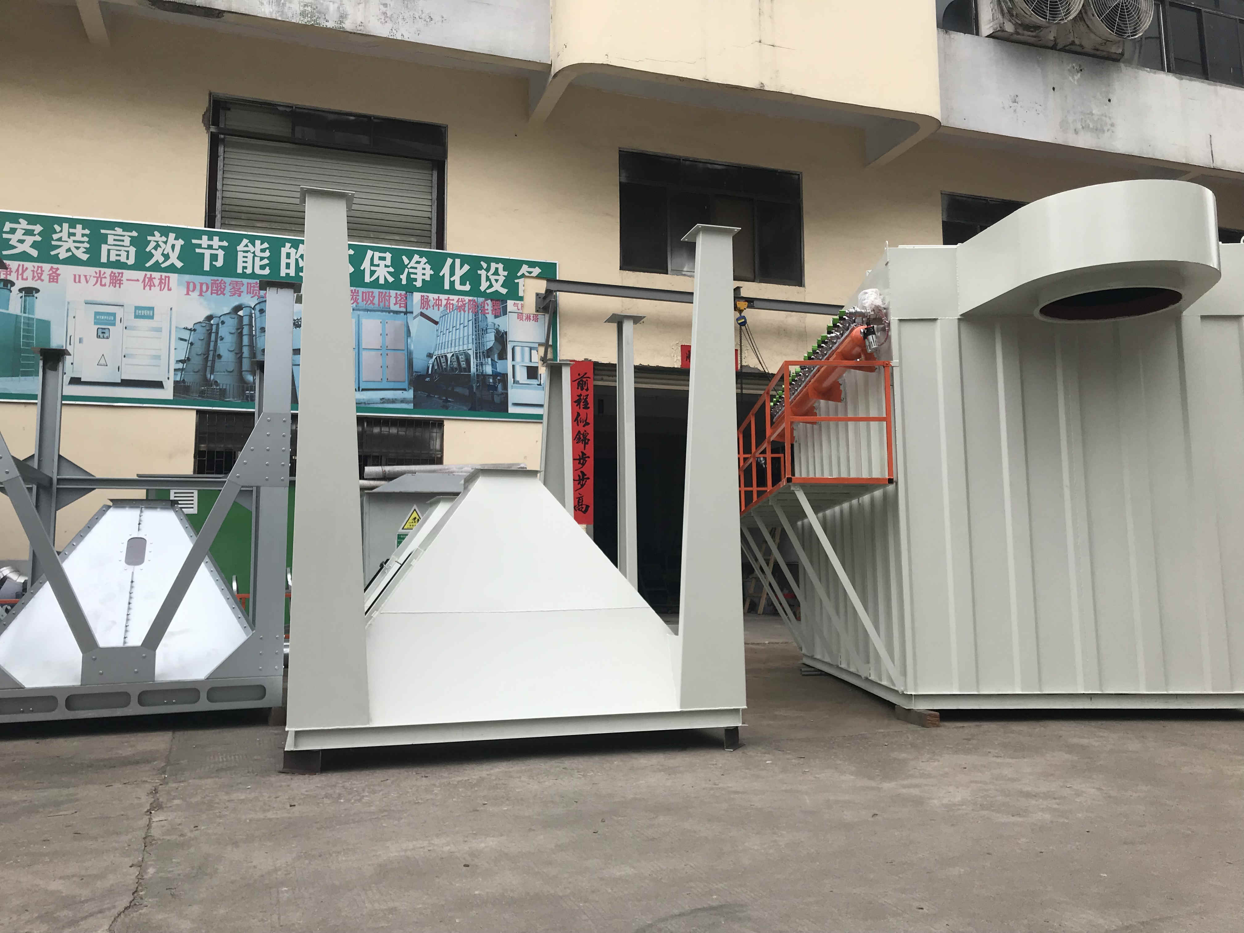 木塑脈沖布袋除塵器由高壓風機、除塵器主機、濾袋、電路裝置等組件組成。生產線上安裝集氣罩,除塵器運行時,含塵氣體經集氣罩和風管進入到除塵系統內部,粉塵受慣性或自然沉降等原因落入布袋,經濾袋過濾后,塵粒被滯留在布袋的外側,凈化后的氣體由布袋內部進入上箱體,再由閥板孔、排風口排入大氣,從而達到凈化的目的。