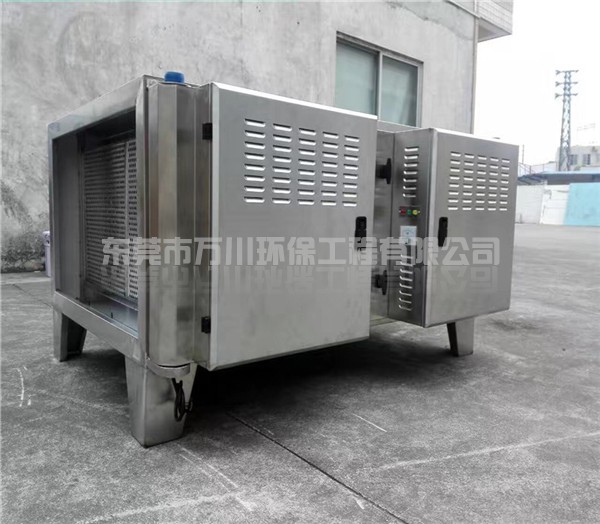 飯?zhí)糜蜔熅哂幸欢ǖ亩拘裕瑴囟雀摺⒂懈g性,長期吸入對人體造成嚴(yán)重的傷害,而且還會對周邊環(huán)境造成污染,要經(jīng)過處理后才可以排放。鑒于對這類污染物的特點(diǎn),我們采用了等離子凈化器去處理,設(shè)備使用耐腐蝕、耐高溫的不銹鋼作為設(shè)備的材料,可以延長設(shè)備的壽命。通風(fēng)管也是采用了耐腐蝕耐高溫的材料制作而成的,通風(fēng)管道中間安裝過濾網(wǎng),可以在油煙進(jìn)去的時候過大顆粒的污染物。